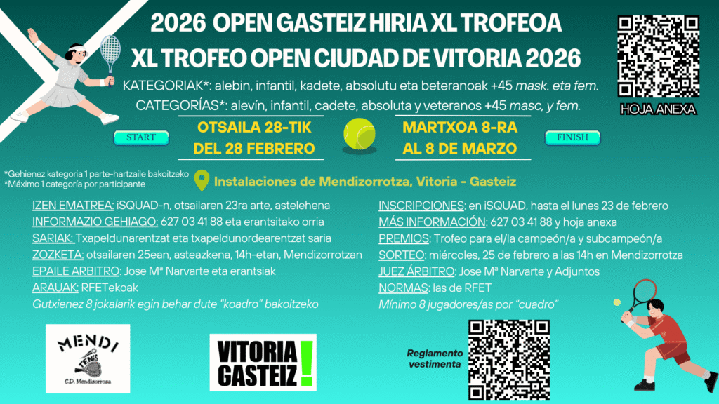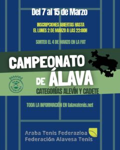 CUADROS FAT 2024 MASTER ÁLAVA: infantil femenino infantil masculino alevin femenino alevin masculino absoluto femenino absoluto masculino Veteranos +45 veteranos +55 CAMPEONATO DE ÁLAVA: junior masculino junior femenino veteranos +45
